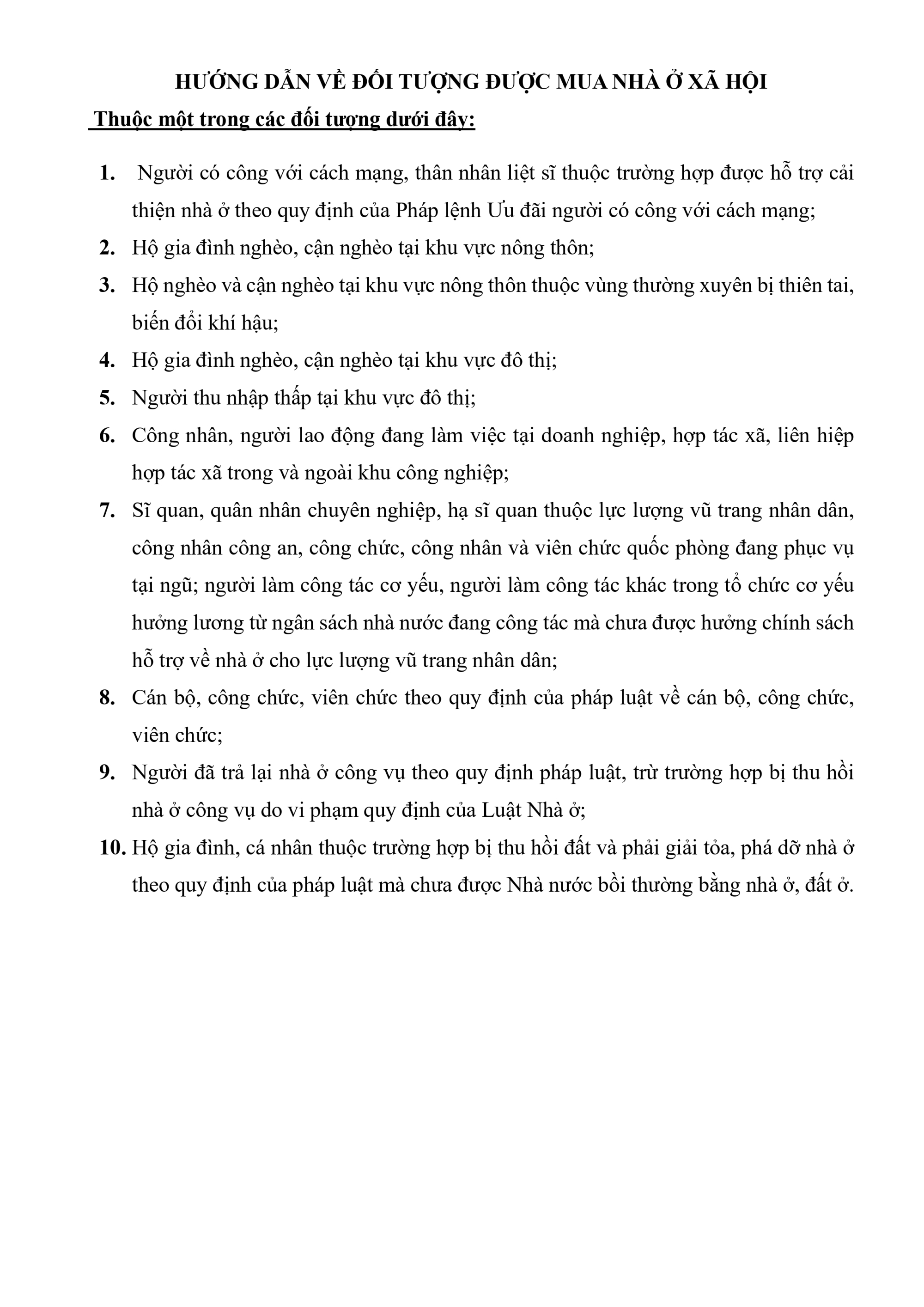 Hướng dẫn đối tượng được mua Nhà ở Xã hội
